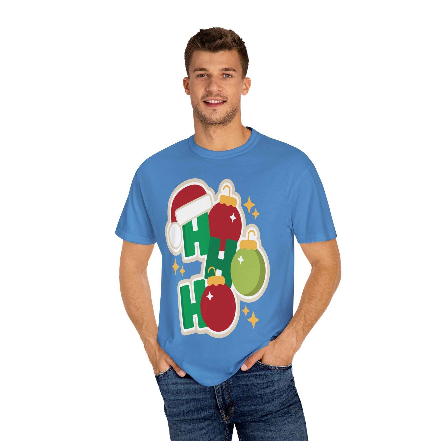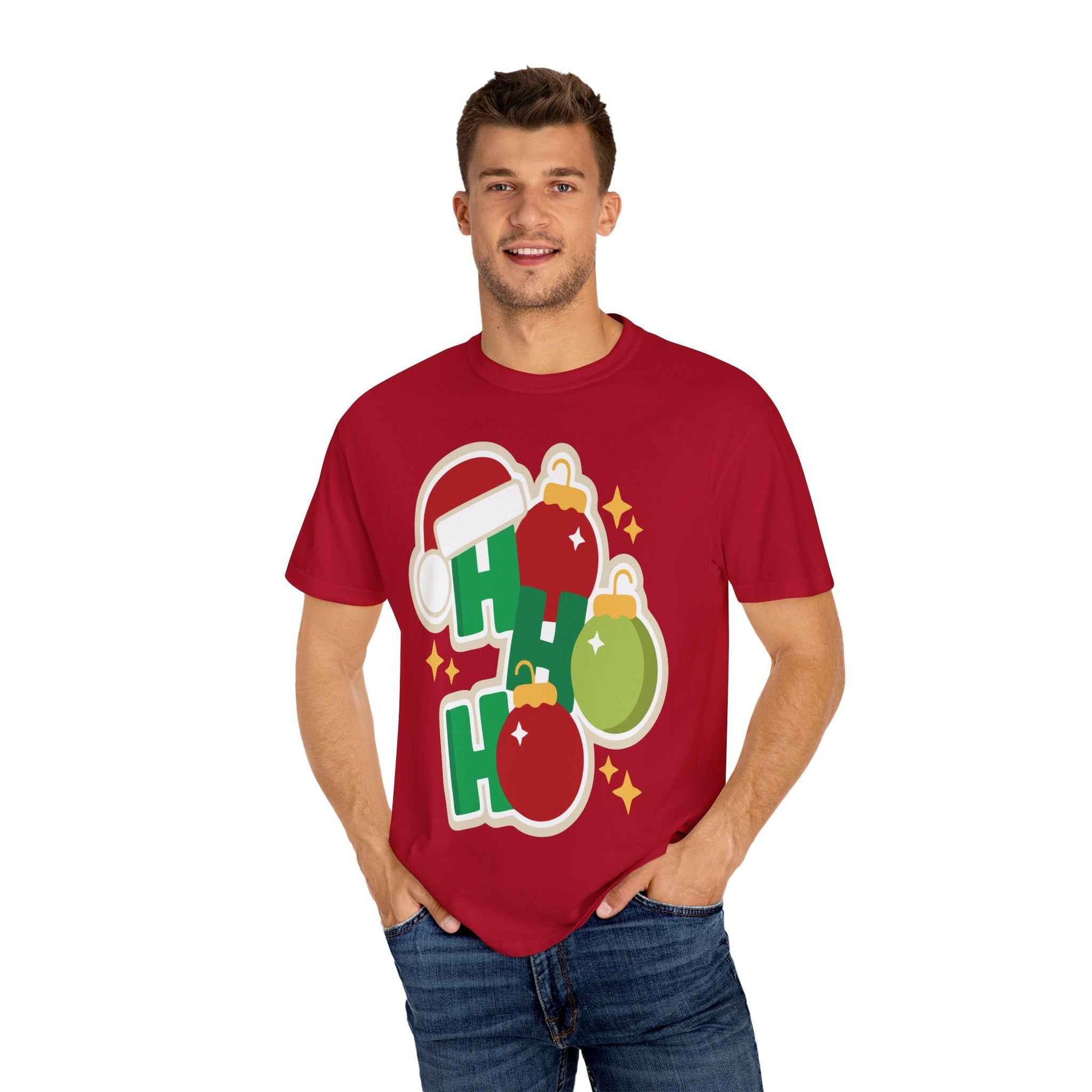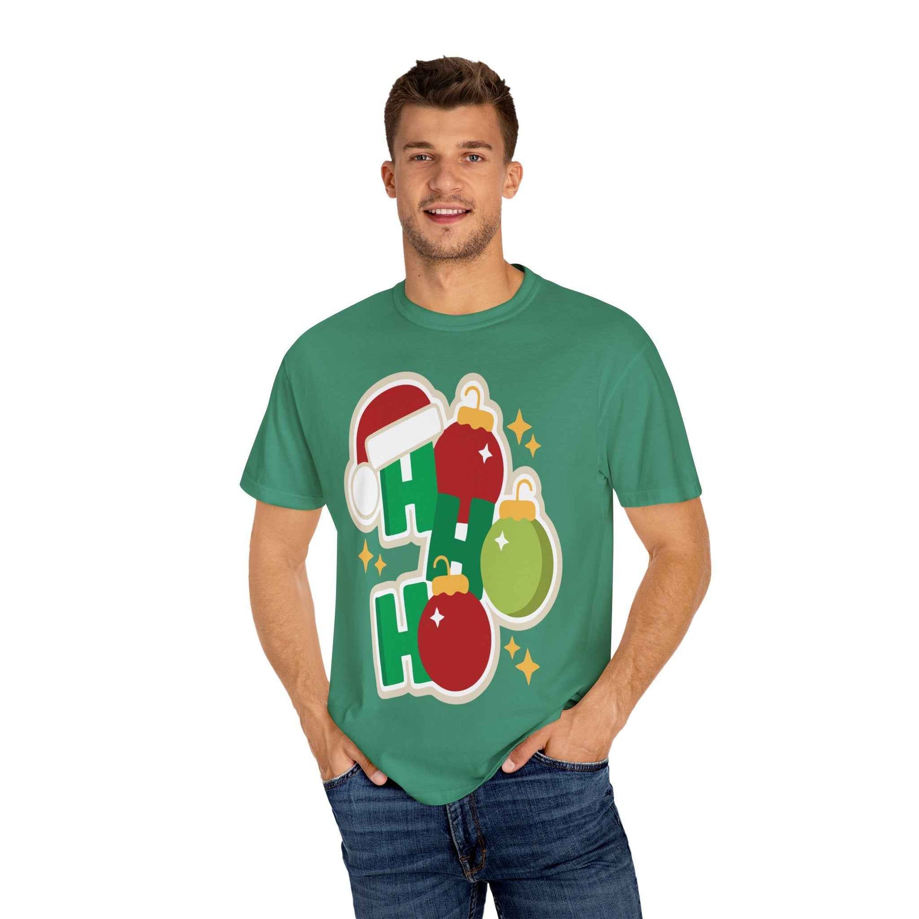 Funny Christmas T-Shirt – Ho Ho Ho Holiday Graphic Tee | Santa Hat & Ornament Design | Festive Xmas Shirt for Men & Women - La Pomada Shop