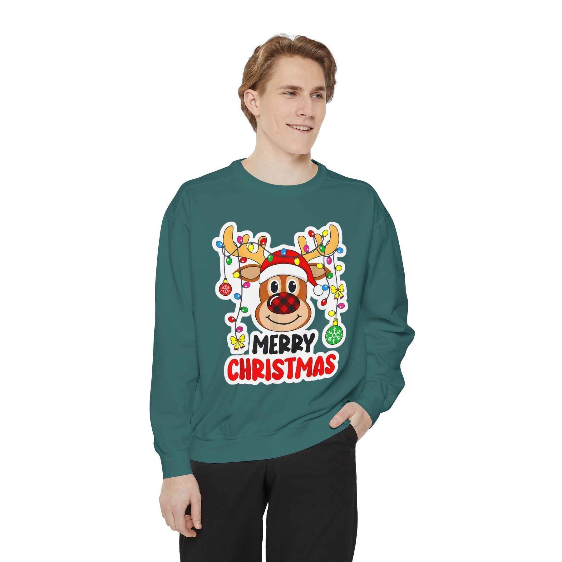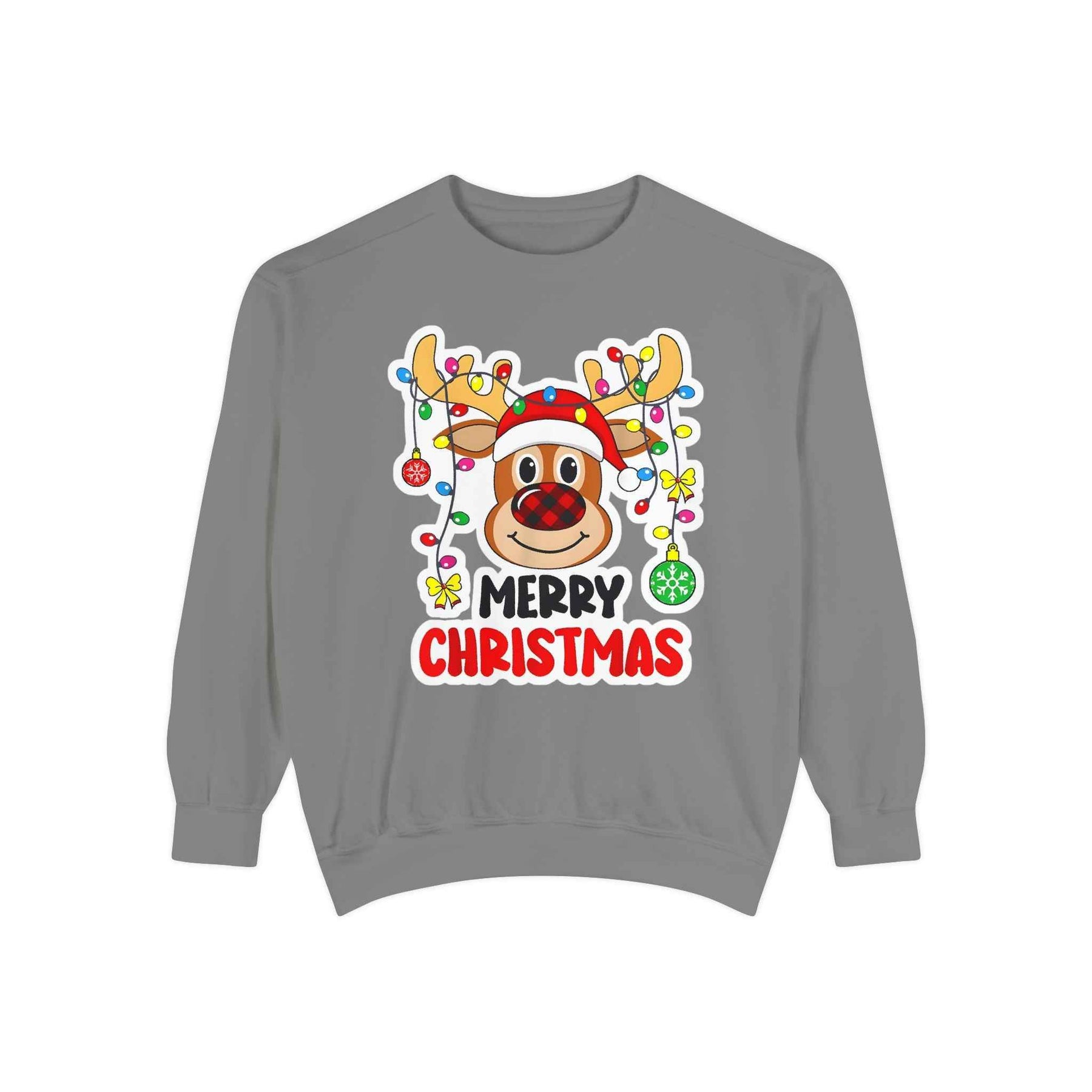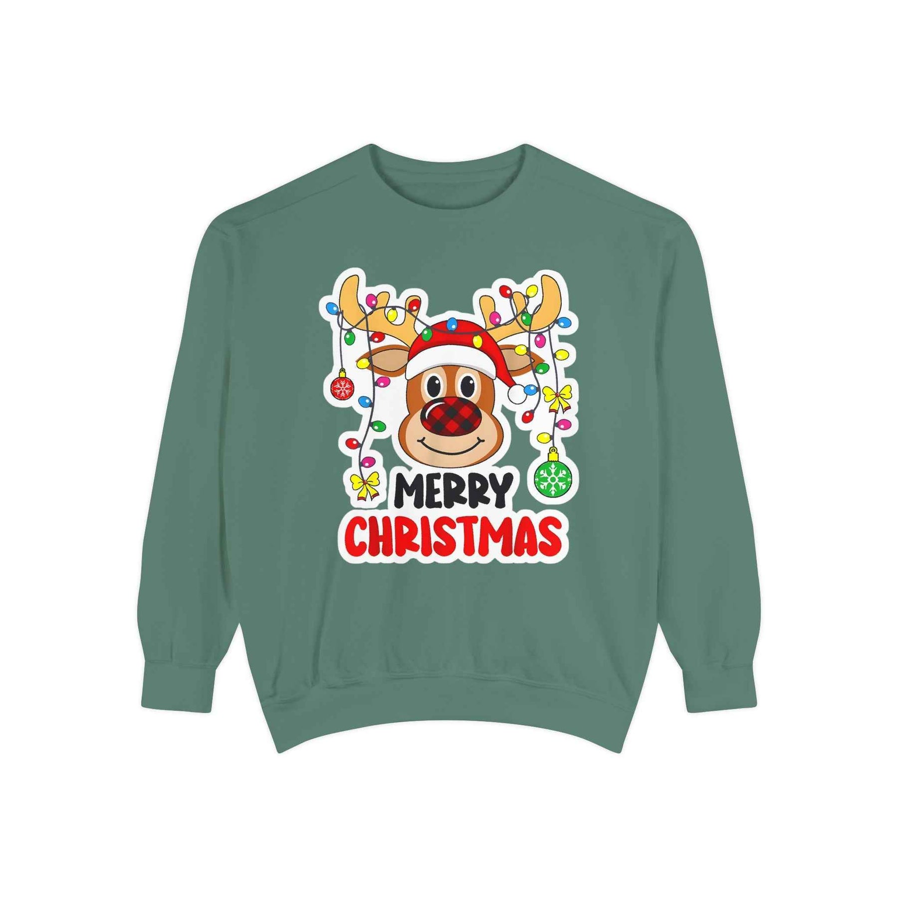 Grinchmas Vibes Reindeer Sweatshirt — "Merry Christmas" Front, "Grinchmas Vibes" Back