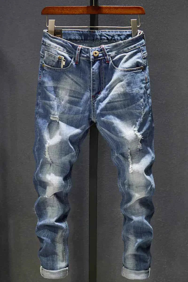Elevate your casual wardrobe with our Ripped Jeans Men Slim Fit Light Blue Stretch. Designed for the modern youth aged 18-24, these jeans are the ultimate choice for those who crave a stylish, all-match look that stands out in any setting. Whether you're heading out with friends or enjoying a relaxed day at home, these jeans are perfect for every occasion.