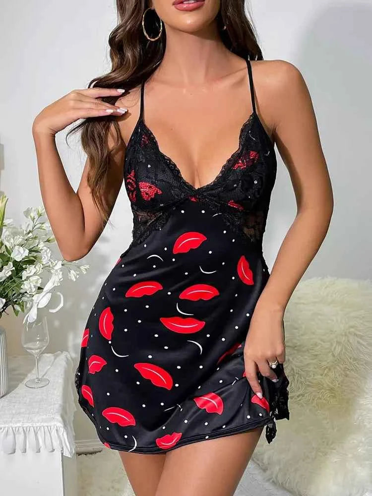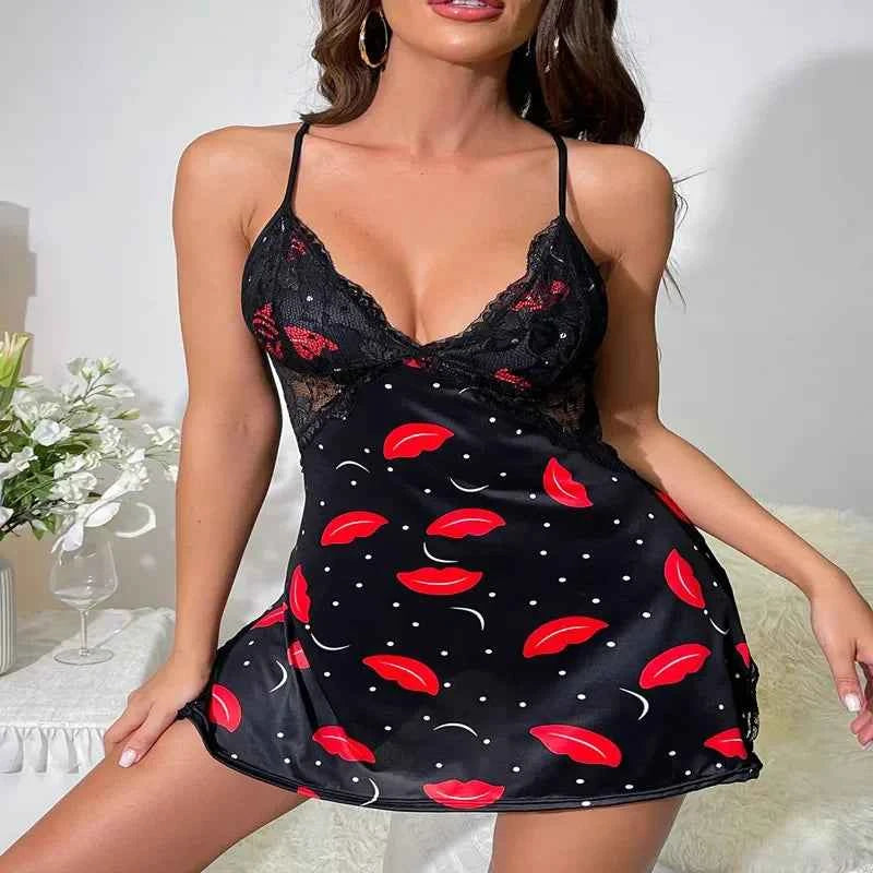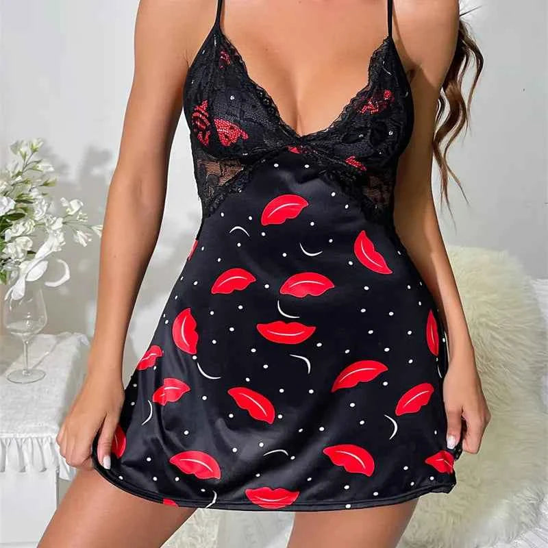 Sexy Nightwear Women Printed Butterfly Nightgown Ladies Sleepwear Homewear Leisure Halter Dresses Girl Black Pyjamas