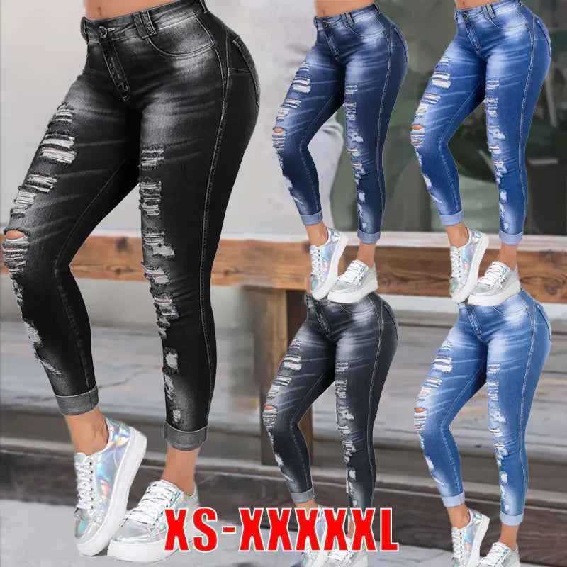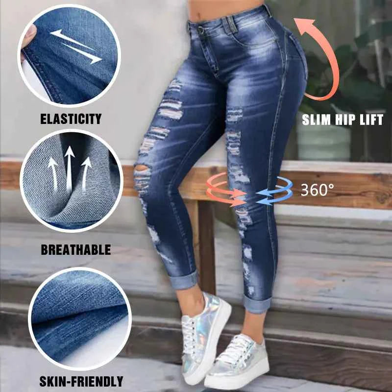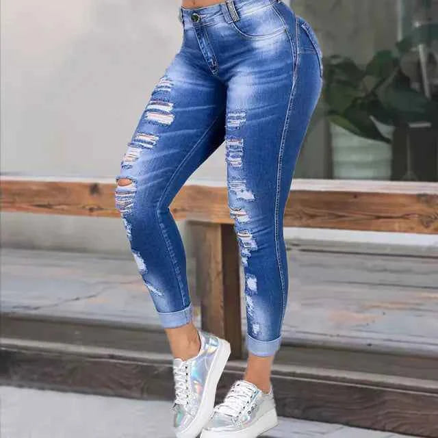 Discover the perfect blend of style and comfort with our Fashion Slim Sexy Trendy Street Casual Broken Ladies Jeans. Designed for the modern woman who values both fashion and functionality, these jeans feature a high waist design that flatters your figure while offering a trendy look.
