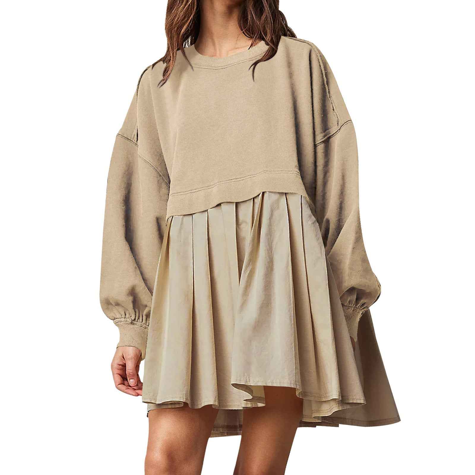 Womens Sweatshirt Dress Loose Long Sleeve Crewneck Pullover Tops Relaxed Fit Sweatshirts Short Dress