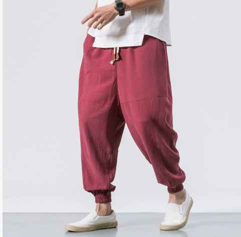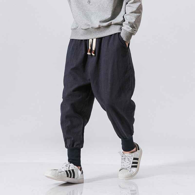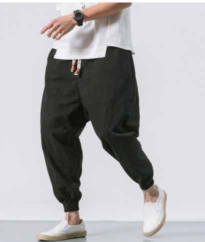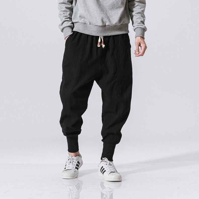 Chinese Style Harem Pants Men Streetwear Casual Joggers Mens Pants Cotton Linen Sweatpants Ankle-length Men Trousers M-5XL