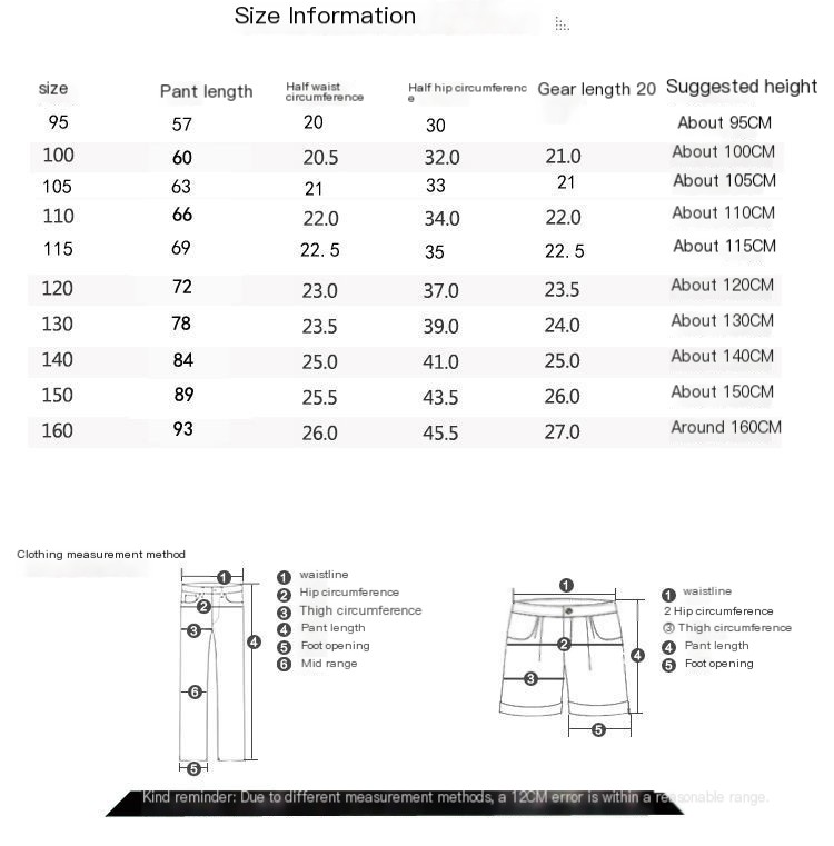 Our denim pants come in various sizes ranging from 100cm to 140cm, ensuring a perfect fit for every young trendsetter. Choose the size that suits your child's needs and let them express their individuality in style!